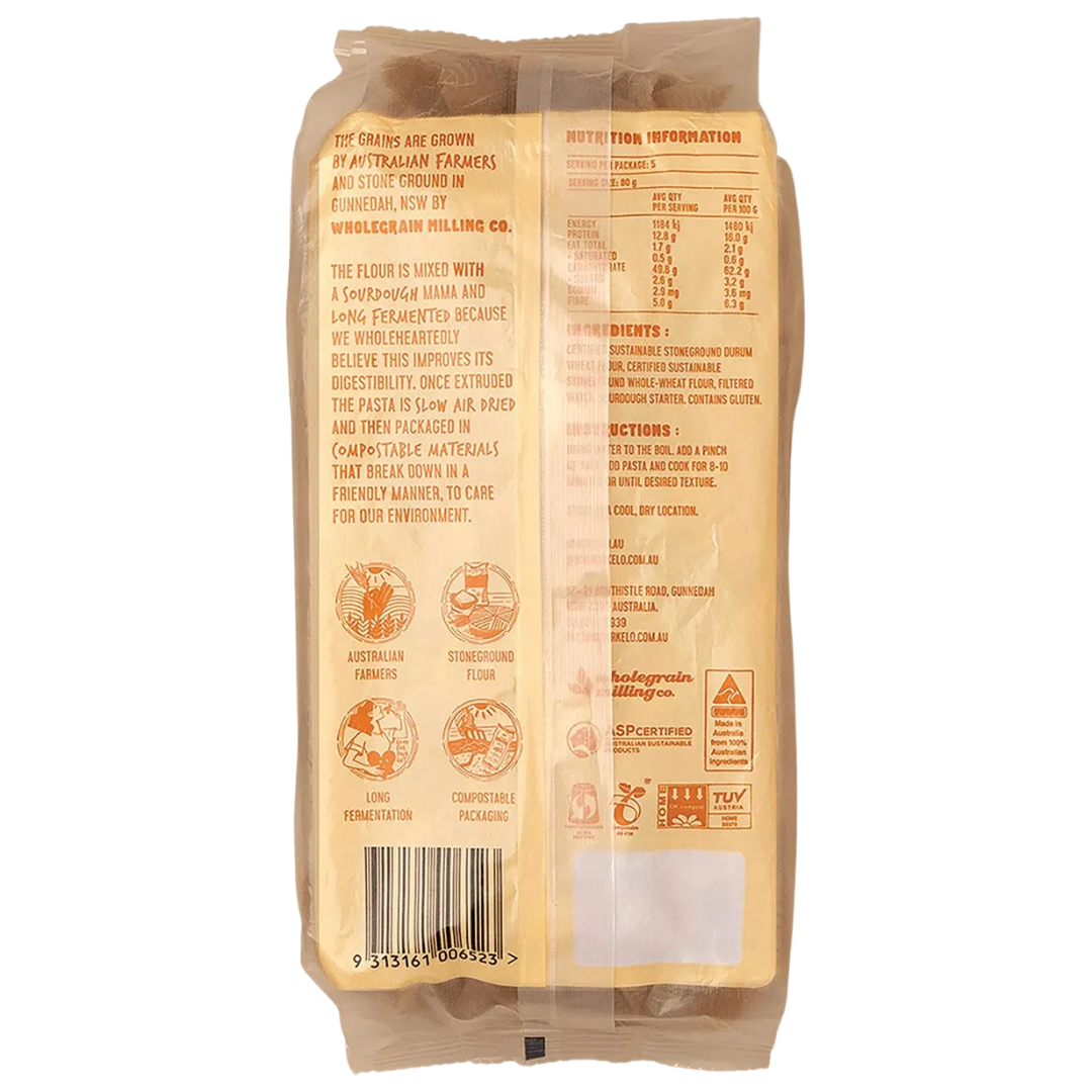 Certified Sustainable Stoneground Durum Wheat Flour, Certified Sustainable Stoneground Whole-Wheat Flour, Filtered Water, Sourdough Starter.